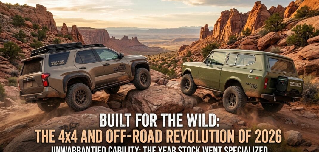 The 4×4 world has officially shifted. While the “built not bought” mantra will always have its place, 2026 is defined by extreme, factory-warrantied capability. Leading the charge is the Toyota 4Runner Trailhunter, which has just claimed the “Best Off-Road Warrior” award for its over-engineered approach to overland travel. We are also seeing a massive leap in “silent torque” with the Scout Traveler, proving that range-extended EVs are ready to tackle the backcountry without the range anxiety. From frame-mounted rock rails to 35-inch factory tires, the line between “stock” and “specialized” has never been thinner.
