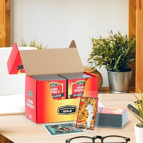 🌟 𝗖𝗼𝗺𝗽𝗮𝘁𝗶𝗯𝗹𝗲 𝗳𝗼𝗿 𝗠𝗼𝘀𝘁 𝗖𝗮𝗿𝗱 𝗧𝘆𝗽𝗲𝘀: Expertly designed for a wide range of trading cards. With their 3 5/16″ by 4 7/8″ size and 1/2″ lip the Cardboard Gold Card Saver 1 holders are ideal for baseball, football, and other sports cards, including pre-1957 larger-sized cards. Whether you’re preserving vintage collectibles or modern favorites, these cardsavers ensure optimal and stylish protection for any card in your collection.